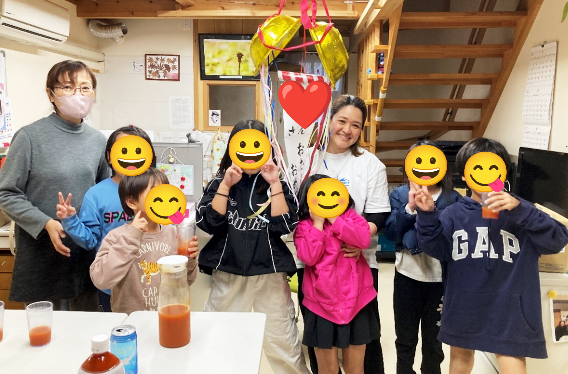 沖縄県内にある児童養護施設の子どもたちは、勉強の合間の息抜きに、ジースリーを炭酸水で割って楽しんだそう。満面の笑顔で「おいしい!」「ありがとう」と大喜び。