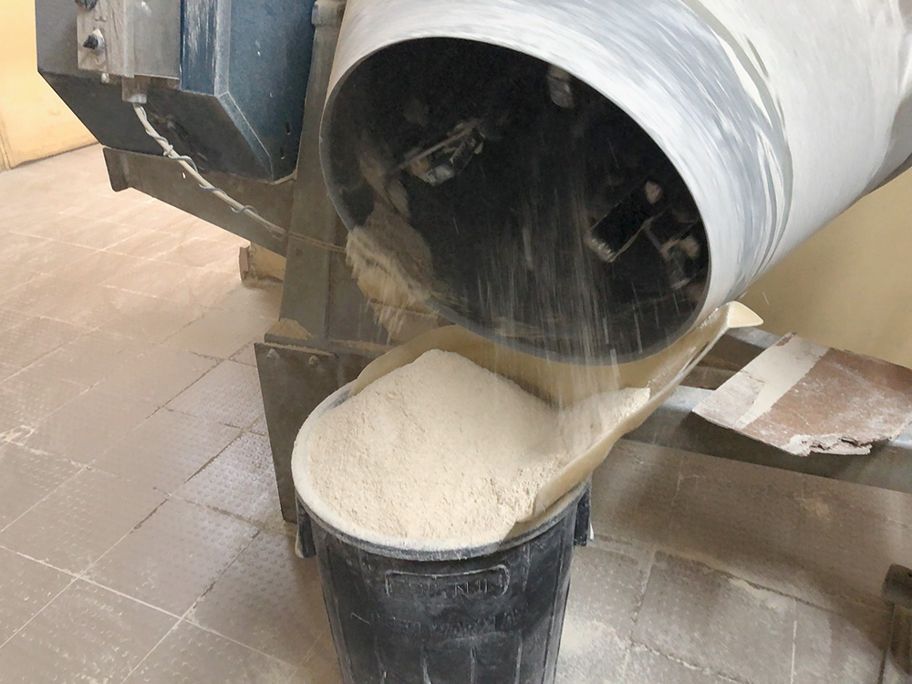 ②粉砕・比率調整:原料を機械で粉砕し、粒の大きさを均一に整えます。トウモロコシと大豆を適切な比率で混合することで、のちの工程において栄養素が均等に分散しやすくなるそうです。