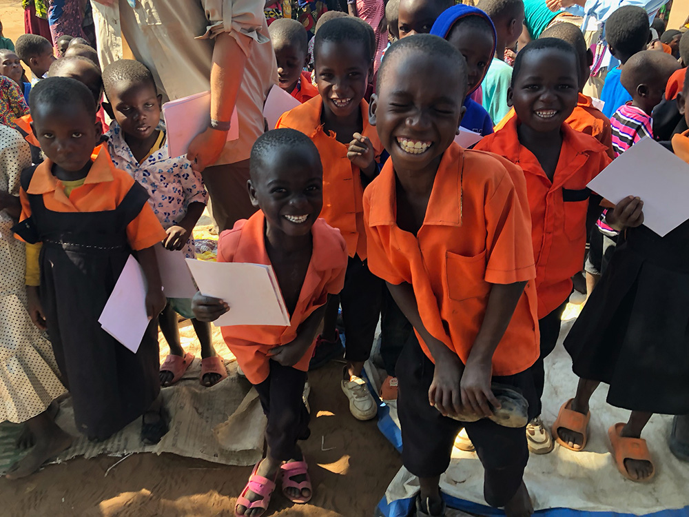 日本からのプレゼントを受け取り、みんなが笑顔に